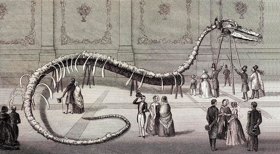 Stitched together from multiple whale fossils by showman Albert Koch. It fooled crowds because people wanted it to be real. The bones were genuine. The narrative was not.